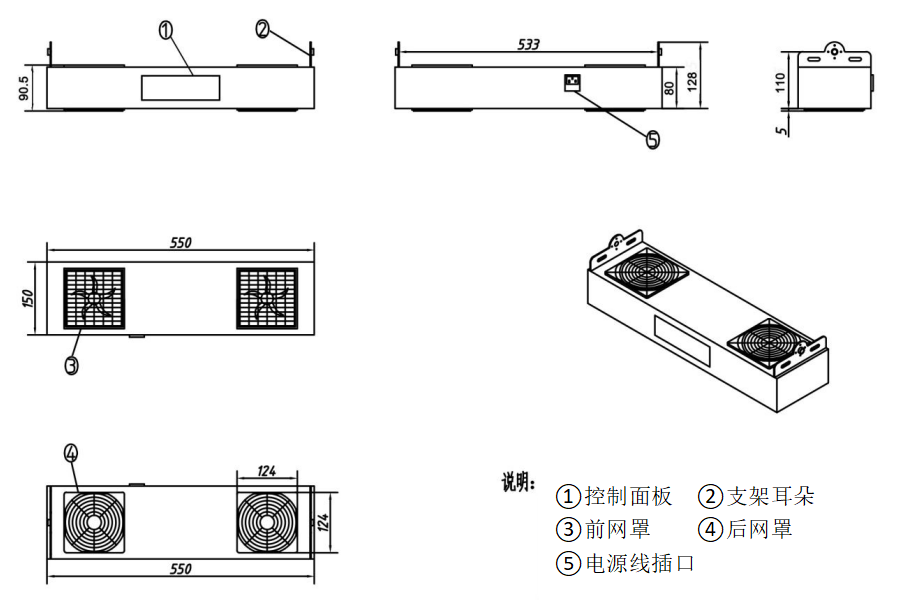 550mm(L)*150mm(W)*80mm(H) |